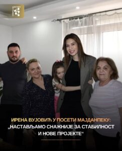 Потпредседница СНС и министарка Ирина Вујовић посетила је Мајданпек, где је поручила да је у наредном периоду кључно да представници странке буду још ближи грађанима, да са њима разговарају и буду доступни за сваку потребу, проблем и идеју која доприноси развоју општине.