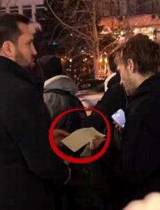 На снимку који се појавио у јавности јасно се види тренутак у којем Миран Погачар предаје коверту са новцем Лазару Динићу из Бора, особи која је у јавности позната по учешћу у насилним блокадерским активностима.